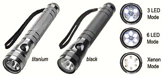 grip; Lanyard included White LED, Black or Titanium aluminum body