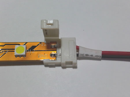 Solderless EZ Connectors - A connector at one end and two wires at the other for connection to your power supply. Instructions here.