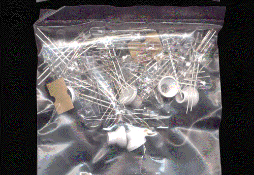 This package contains a good "handful" (about an ounce) of 5mm LEDs and reflectors. Colors unknown. LEDs are priced anywhere from $0.50 ea to $1.90 each on our website. This is an extreme buy at $3.00 a bag. |