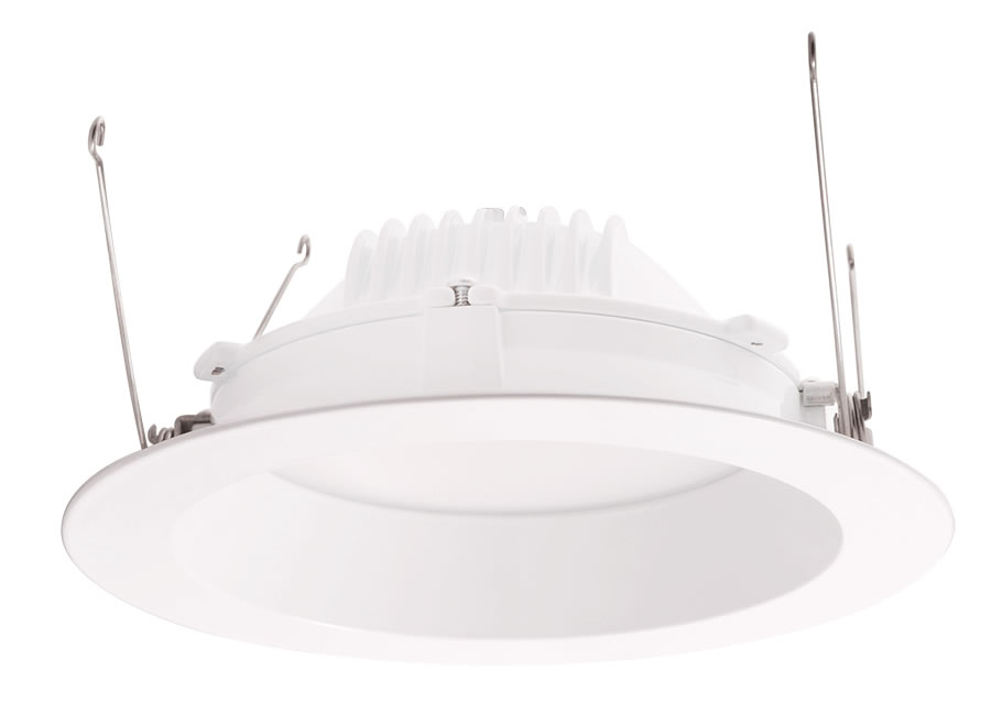UL listed for damp locations, these LED downlight retrofits work great in bathrooms and on porches as well as dry interior spaces. The 12W LED downlight retrofit replaces a 90W PAR lamp; the 8W replaces a 50W PAR lamp. Fits into 4", 5" and 6" incandescent housings. Die cast aluminum housing with chip and fade resistant white polyester powder coat finish. Remodeler downlights and new construction rough ins and trims also available. 5 year warranty.